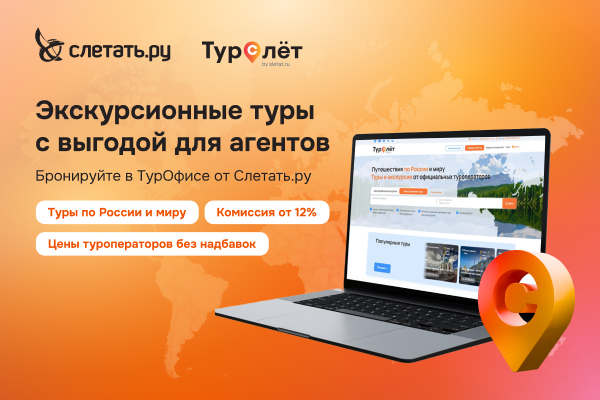 Эксклюзив для ваших туристов! Бронирование туров и экскурсий по России и миру от официальных туроператоров от проекта «Турслёт» доступно в личном кабинете ТурОфис Сервиса бронирования туров «Слетать.ру».
